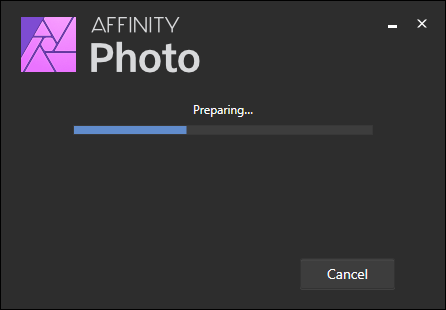 Quá trình cài đặt Affinity Photo sẽ diễn ra ngay sau đó