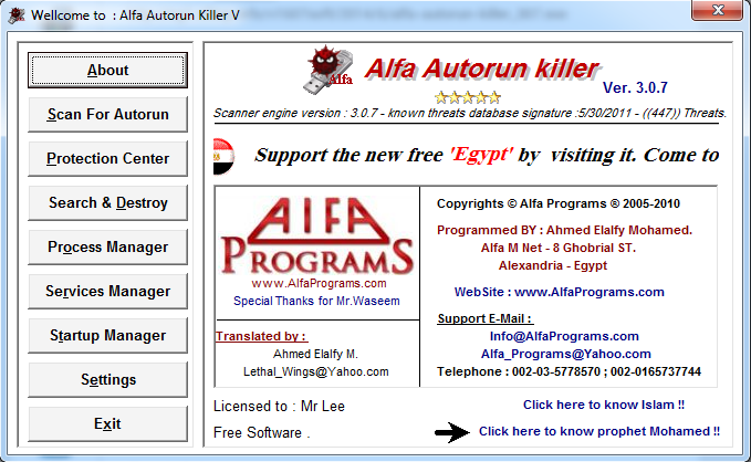 Giao diện Alfa Autorun Killer