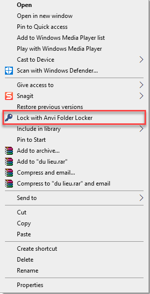 Bạn click chuột phải vào file, thư mục cần bảo vệ sau đó chọn Lock with Anvi Folder Locker