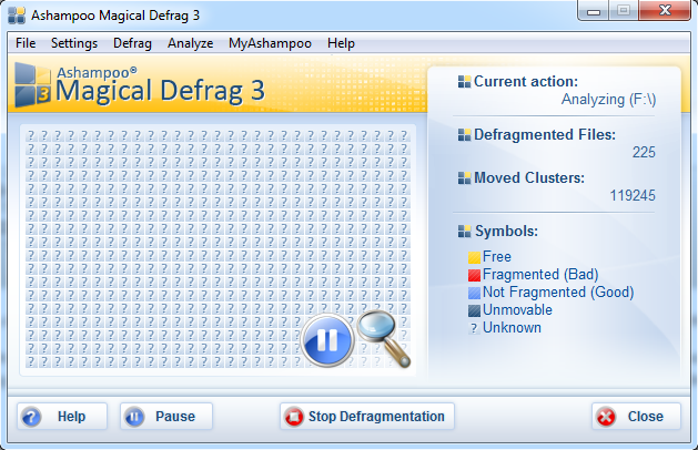 Giao diện của Magical Defrag khá đơn giản, hiển thị chi tiết từng vùng có trong máy tính của bạn qua các dải ô. Khi hoạt động Magical Defrag sẽ rà soát từng dải ô sau đó tiến hành loại bỏ các tệp tin rác có trong hệ thống, chống phân mảnh từ đó giúp ổ cứng loại bỏ các hiện tượng bị phân mảnh thường thấy trong các ổ cứng hoạt động lâu dài.