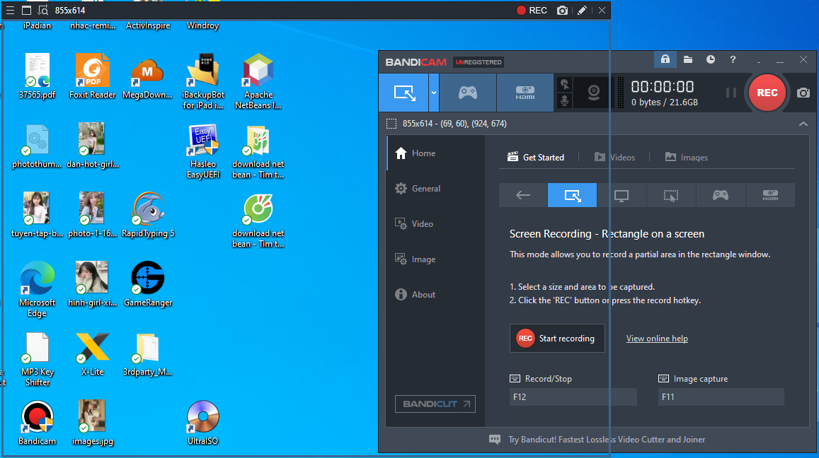 Bandicam hỗ trợ quay trong một khung hình xác định