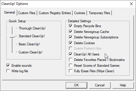 CleanUp là tiện ích có khả năng làm sạch hệ thống của bạn bằng cách xóa đi các tập tin rác nào đó mà không cần xin phép trước khi xóa. Phần mềm được tích hợp nhiều tính năng khấc nhau và tối ưu hoàn toàn cho người sử dụng. CleanUp chỉ mất vài phút tùy chọn cài đặt, phần mềm sẽ được thiết lập để làm sạch hệ thống máy tính của bạn.