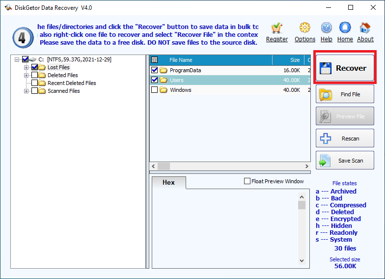 Hệ thống dữ liệu bao gồm tập tin riêng lẻ hay các thư mục có sẵn cũng sẽ được khôi phục. Nó thực hiện quét sector trên ổ cứng và các thiết bị lưu trữ ngoài để phục hồi lấy lại dữ liệu cho người dùng. Đặc biệt, nó có dung lượng khá nhỏ gọn, giao diện trực quan dễ sử dụng.