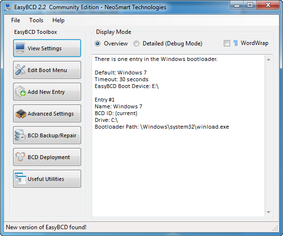 Chỉ khi lựa chọn cài đặt EasyBCD cho phép bạn thay đổi tất cả các thiết lập quan trọng trên máy tính đa khởi động. Chương trình miễn phí này có công cụ khắc phục sự cố và chuẩn đoán tốt có thể giúp bạn khôi phục từ một hệ thống đã bị hỏng. Một lời khuyên ở đây là, bạn cần phải làm quen với các menu đa khởi động trước khi sử dụng chương trình này để tránh làm hỏng hệ thống.