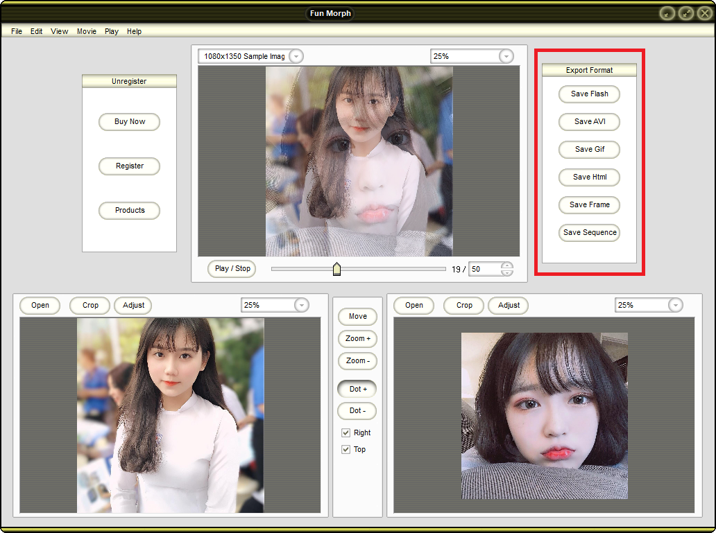 Fun Morph có thể chuyển đổi file ảnh theo từng đặc điểm, chi tiết riêng biệt. Bạn có thể sử dụng Fun Morph để chuyển đổi qua lại giữa các bức ảnh với nhiều định dạng xuất ra khác nhau. Là một trong số ít các phần mềm giúp bạn trích xuất slide ảnh thành nhiều định dạng như flash, video avi, ảnh gif hay cả dưới dạng html. Fun Morph sẽ giúp bạn tiết kiệm thời gian đồng thời tạo cho bạn những bức ảnh chuyển cảnh thú vị, độc đáo.