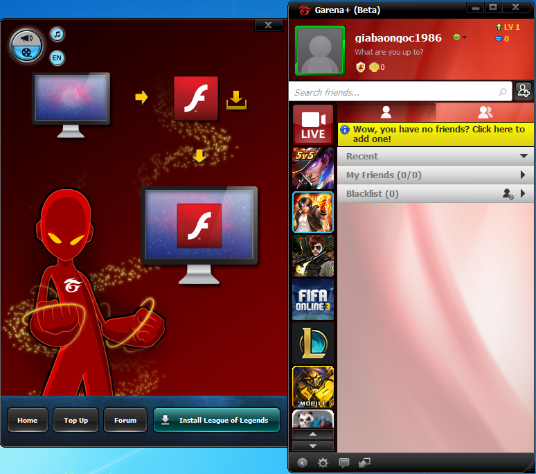 Bạn sẽ tạo tài khoản chơi game trực tuyến rất dễ dàng để chơi nhiều game online nổi tiếng. Hơn hết là kết nối, giao lưu kết bạn với nhiều game thủ mọi miền,bởi chơi game mà hải có bạn, có hội có thuyền mới vui, mới hấp dẫn được. Và gười chơi có thể thêm bạn bè vào trong danh sách mỗi khi bạn bè của bạn online sẽ có thông báo. Giống như một facebook các mọt game cũng có thể trò chuyện và chuyển tải thông điệp tới bạn bè thông qua Garena Messenger.
