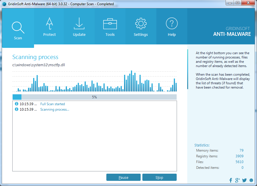 Quá trình quét virus của GridinSoft Anti Malware