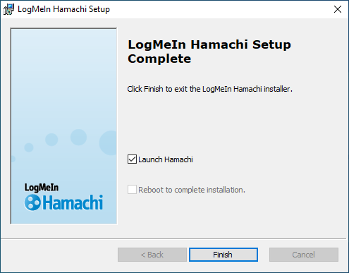 Nhấn Finish để kết thúc cài đặt và mở Hamachi lên