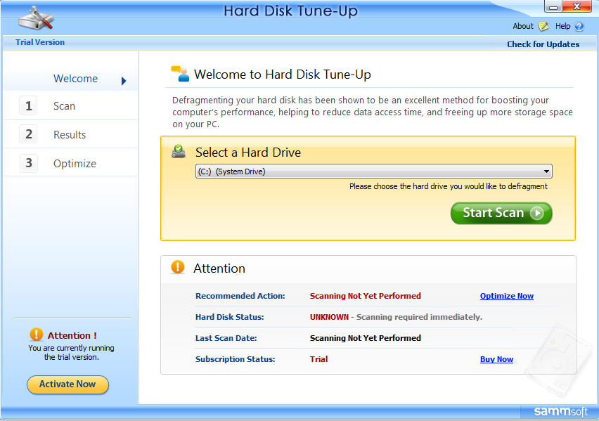 Quá trình quét của Hard Disk Tune Up diễn ra rất nhanh nhờ các thuật toán tiên tiến chính vì vậy bạn không phải chờ lâu, sau khi quét xong Hard Disk Tune Up sẽ thông báo chi tiết tình trạng ổ cứng để bạn đưa ra phương án xử lý kịp thời.