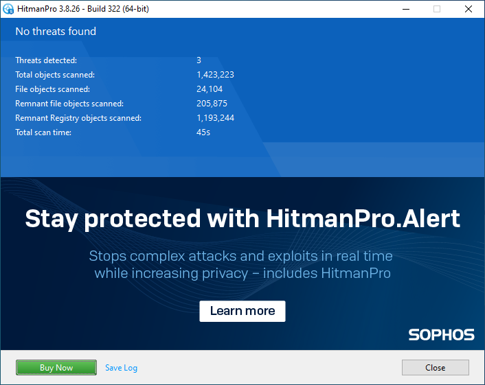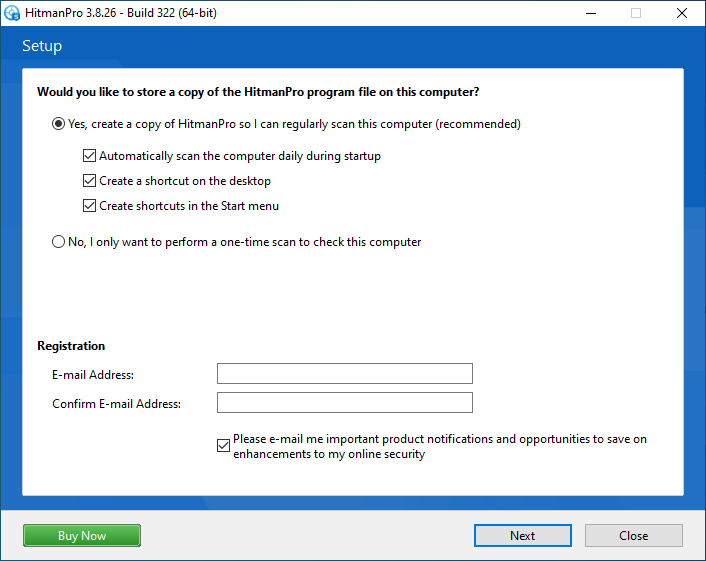 Hitmanpro cung cấp cho bạn một bản Free để lấy ý kiến, nó được thiết kế để kiểm tra xem các biện pháp bảo mật của bạn có hiệu quả. Nếu không có gì được tìm thấy thì máy tính của bạn thực sự an toàn. Khi một virus được tìm thấy bạn có thể được cấp phép sử dụng 30 ngày miễn phí để loại bỏ các mối đe dọa.