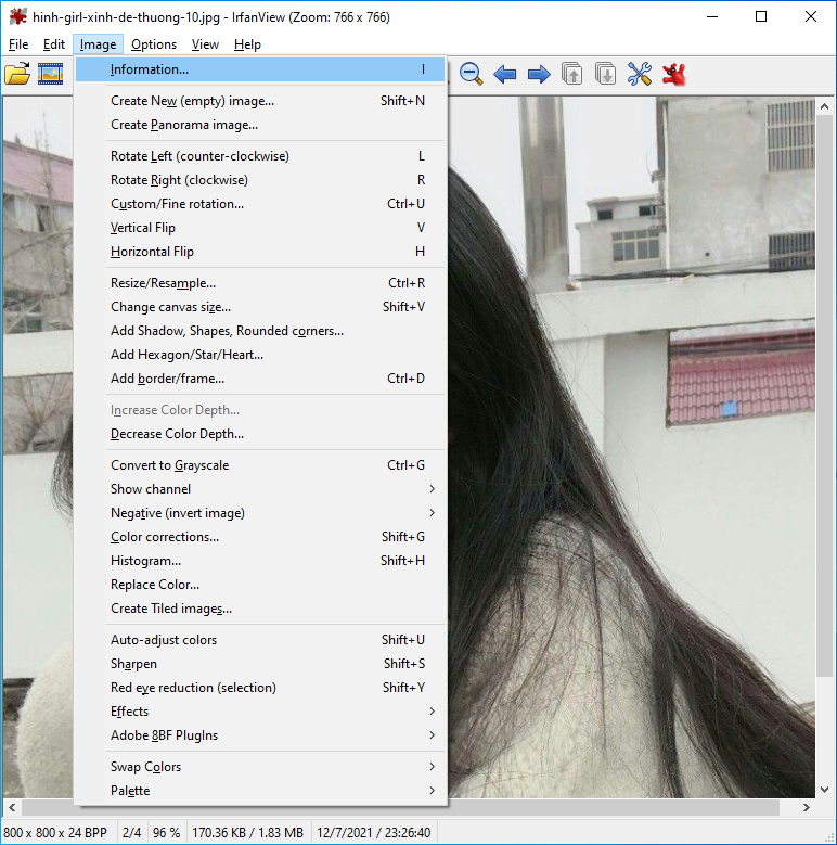 Tab image giúp bạn tạo các hiệu ứng, tạo mới hay xem các thông tin về bức ảnh của bạn