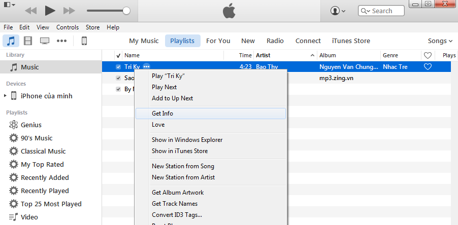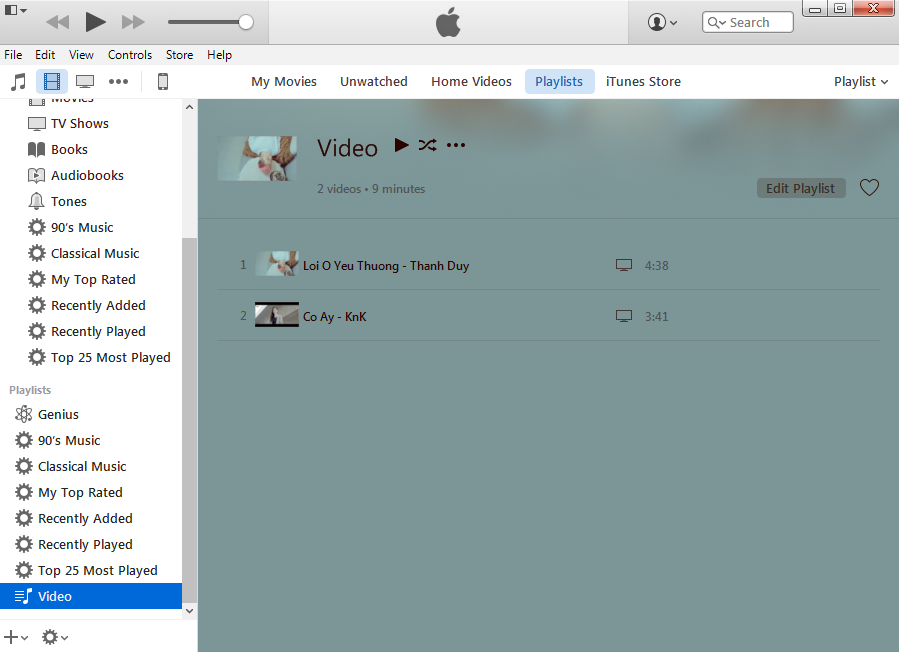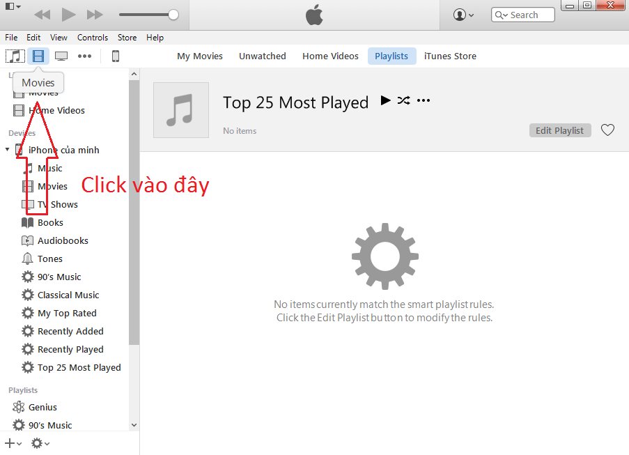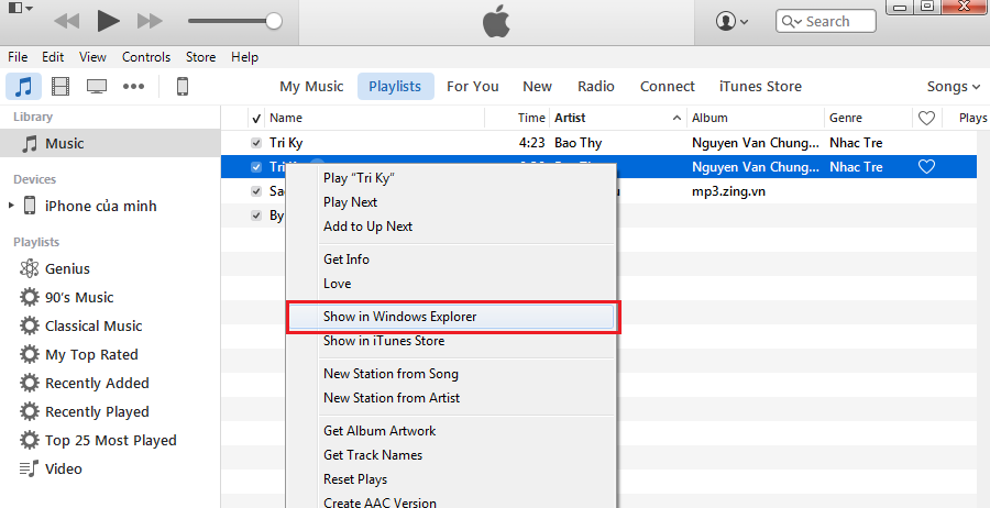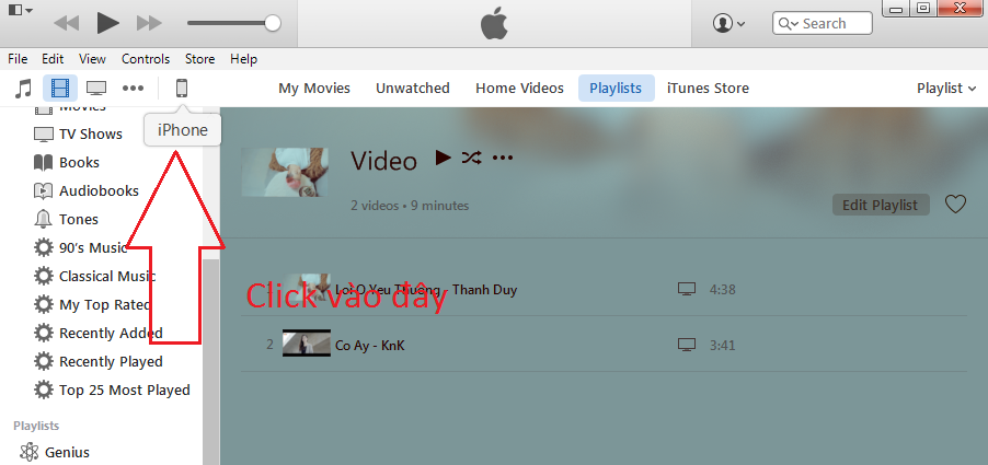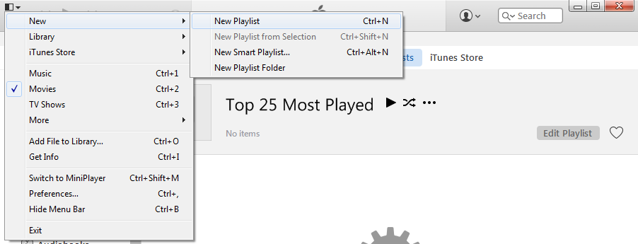ở góc bên trái phía trên iTunes, chọn New ->New Playlist