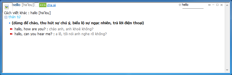 Chỉ cần vài thao tác đơn giản thôi phần mềm này sẽ hiển thị thông tin về nghĩa, từ loại, từ đồng nghĩa, trái nghĩa với những từ được tra, qua đó bạn dễ dàng học được một lần nhiều từ đồng thời dễ nhớ cũng như sẽ thấy thú vị hơn khi học. Bên cạnh đó không thể bỏ qua khả năng tìm kiếm đặc biệt thông minh của nó như là chuyển dạng như so sánh hơn, so sánh nhất, số nhiều, dạng quá khứ, tương lai của từ mình tra cứu.