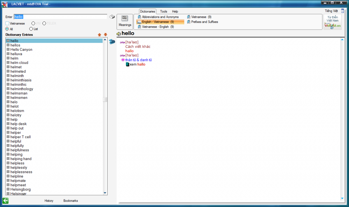 Lạc Việt mtd9 EVA hỗ trợ hàng chục ngàn từ vựng khác nhau