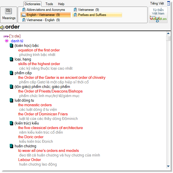 Ngoài ra bạn sẽ nhanh chóng tìm nghĩa của từ nhờ vào hệ thống menu được sắp xếp hợp lý, bố cục gọn gàng của phần mềm này.