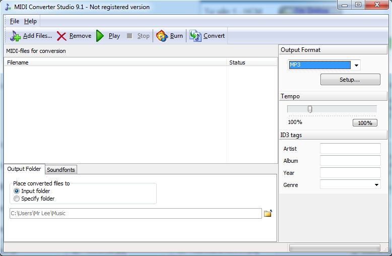 MIDI Converter Studio có giao diện đơn giản dễ sử dụng, người dùng sẽ không mấy khó khăn khi tiếp xúc với MIDI Converter Studio lần đầu.