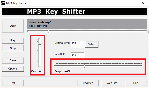 MP3 Key Shifter có giao diện đơn giản, hỗ trợ tối đa cho phép người dùng chỉnh sửa file nhạc mp3 nâng hậ tone nhạc để có bản thu cực kì hoàn hảo, tuyệt vời. Với các thao tác đơn giản bạn chỉ cần bấm Open để mở file nhạc mp3 cũng có thể là wav sau đó nhấp vào Play để bắt đầu chơi, muốn nâng cao hay hạ thấp tông thì trượt thanh Key, còn kiểm soát tốc độ nhanh hay chậm thì trượt thanh Tempo. Sau khi hoàn thành test thử nếu hài lòng thì lưu lại.