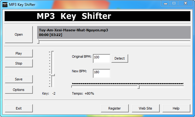 Với MP3 Key Shifter, âm tần của bản nhạc có thể được thay đổi một cách dễ dàng