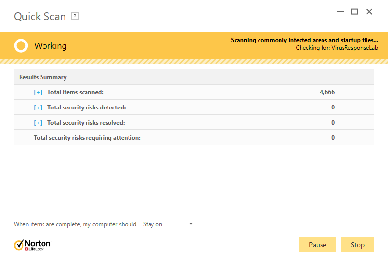 Quá trình tìm và diệt virus của Norton Internet Security