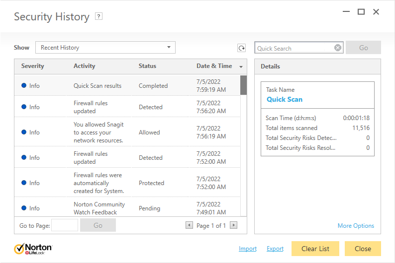 Khi quá trình diệt virus hoàn tất, bạn có thể xem lại lịch sử của toàn bộ quá trình quét để biết rõ hơn về tình trạng sức khỏe máy tính của mình.