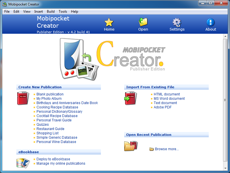 Khác với Mobipocket Reader - Mobipocket Creator là chương trình tạo sách ebook rất chuyên nghiệp và mạnh mẽ đồng thời giúp chuyển đổi trực tiếp từ các file .doc, .pdf sang định dạng prc. Bởi lẽ prc cũng là định dạng khá phổ biến hơn nữa nó có dung lượng nhỏ gọn, giao diện đơn giản và còn bảo mật tốt cũng như dễ dàng chia sẻ qua mạng Internet.