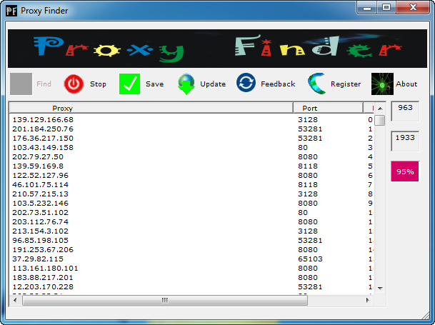 Proxy Finder là một ứng dụng miễn phí hỗ trợ người dùng tối đa trong quá trình tìm kiếm proxy, chương trình có thể chạy tốt trên các hệ điều hành như:WinXP, WinVista, WinVista x64, Win7 x32, Win7 x64, Win2000, Windows2000, Windows2003,
