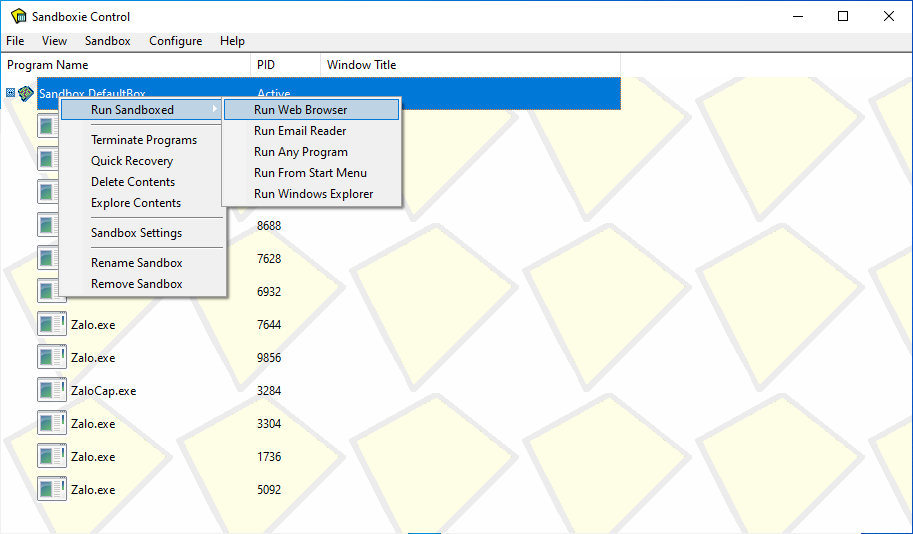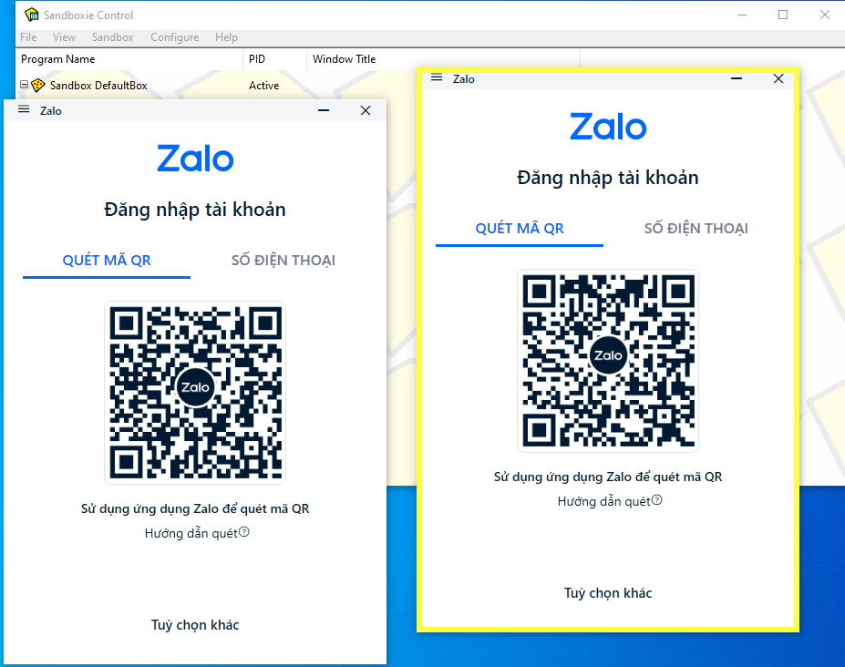Sandboxie cho phép bạn mở thêm ứng dụng chỉ hoạt động 1 chương trình riêng lẻ trên máy tính của bạn, Zalo là một ví dụ