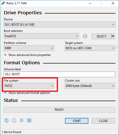 Nếu cài FreeDOS thì Rufus chỉ hỗ trợ usb ở định dang FAT32