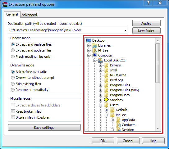Cách 2: Chọn Extract files...: đây là bước giải nén mở rộng, bạn click vào đây sẽ xuất hiện cửa sổ giải nén có tên Extraction path and options, tại đây có nhiều lựa chọn tuy nhiên mình chỉ giới thiệu tới các bạn các lựa chọn căn bản.