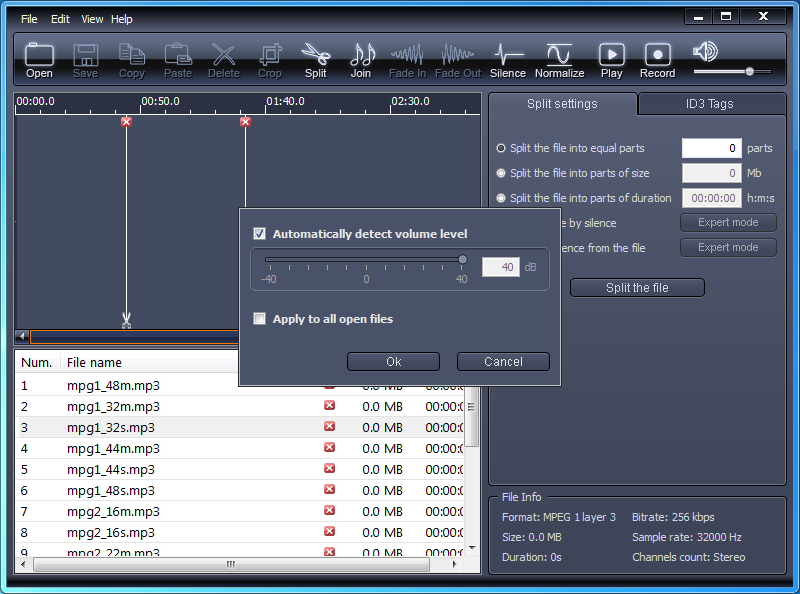 - Cắt các file Mp3 với dung lượng lớn hay nhỏ nhanh chóng và chính xác.