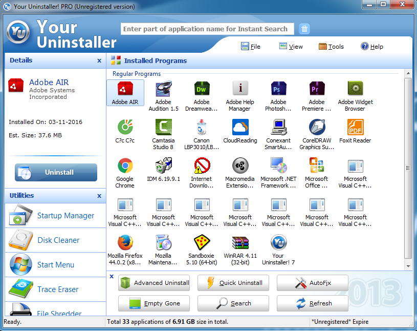 Your Uninstaller sẽ gỡ cài đặt triệt để không để sót file nào trong hệ thống