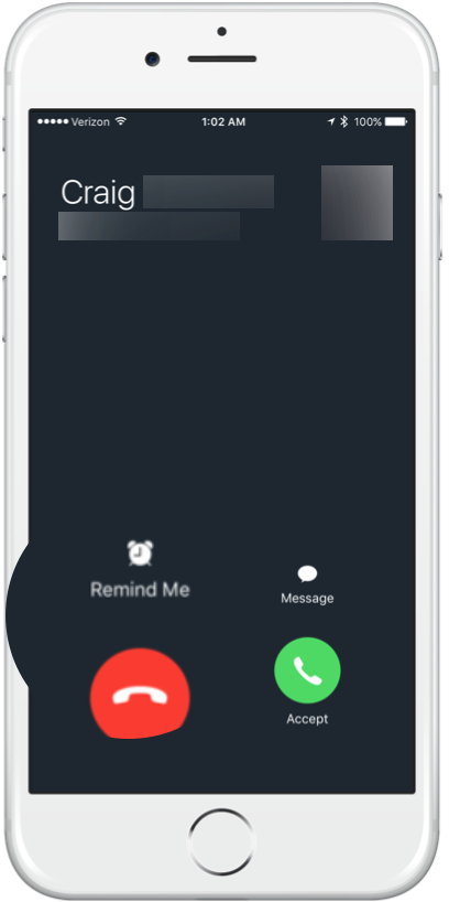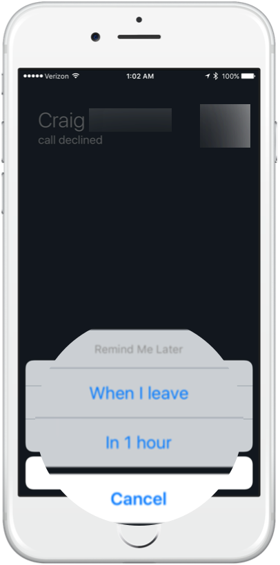 Bước 2: Tùy chọn sẽ được hiển thị trên màn hình cuộc gọi ở phía dưới cùng điện thoại của bạn. Bạn có thể chọn để được nhắc nhở trong một giờ tới, khi bạn đã không còn việc bận hoặc khi đã về nhà. Bạn nhấn vào một trong các tùy chọn để từ chối cuộc gọi và thiết lập một lời nhắc nhở để gọi lại người này.