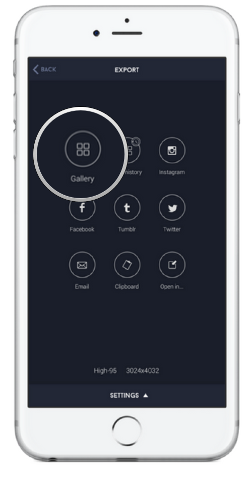 Bước 5: Khi bạn đã cảm thấy hài lòng với hình ảnh của bạn, hãy nhấn vào nút Share và tùy chọn Gallery để lưu ảnh vào thư viện ảnh của bạn.