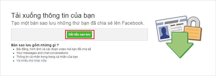 Vậy là xong, khi nào Facebook hoàn tất quá trình backup bạn chỉ việc vào email và tải file được backup xuống. Cần chú ý rằng khi Facebook gửi liên kết backup vì lý do bảo mật liên kết đó chỉ tồn tại trong vài ngày nên bạn hãy thường xuyên truy cập website của mình để kiểm tra tiến trình nhé.
