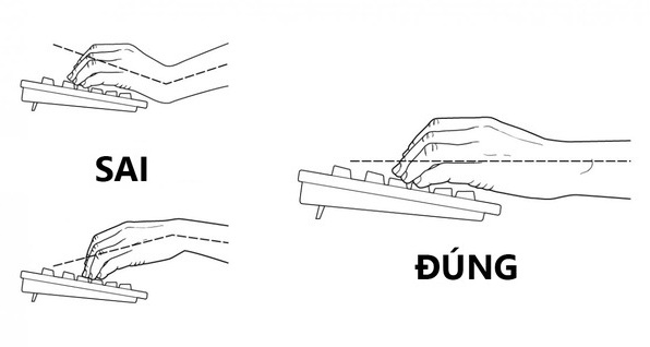 Tay bạn khi đặt lên bàn phím cần thẳng hàng, ngón tay giữa của bạn cần phải vuông góc với bàn phím