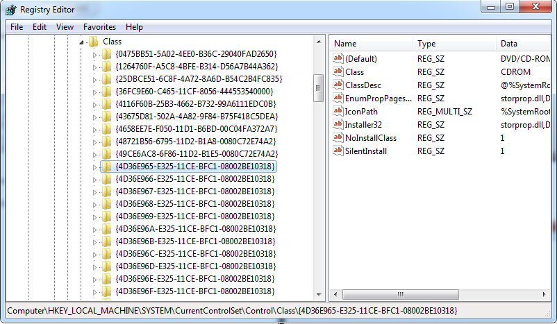 Tại cửa sổ Registry Editor, bạn tìm tới thư mục HKEY_LOCAL_MACHINE ->SYSTEM->CurrentControlSet->Control->Class-> {4D36E965-E325-11CE-BFC1-08002BE10318}
