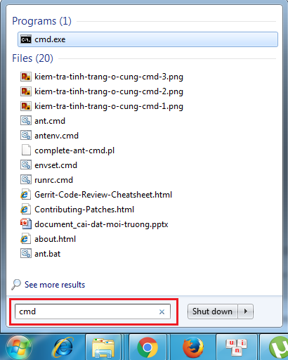 Bước 3: Mở Command Prompt bằng cách vào Start >> gõ cmd vào ô tìm kiếm >> Enter