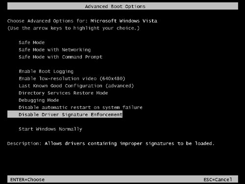 Bước 1: Bạn khởi động lại máy tính, khi đang khởi động bạn nhấn phím F8 để truy cập vào Advanced Boot Options, sau khi vào Advanced Boot Options bạn chọn dòng Disable driver signature enforcement.