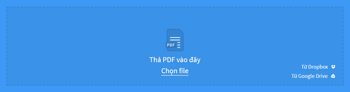 Bạn click chọn Chọn file để chọn file .pdf cần convert sang word, hoặc bạn có thể lựa chọn link từ Dropbox hoặc từ Google Driver