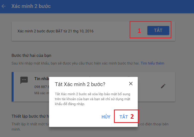 Hướng dẫn tắt xác minh 2 bước tài khoản Google, Gmail