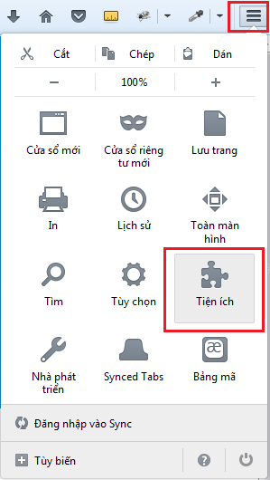 Bước 1: Tại trình duyệt Chrome chọn Tiện ích như hình dưới hoặc truy cập https://addons.mozilla.org/vi/firefox/