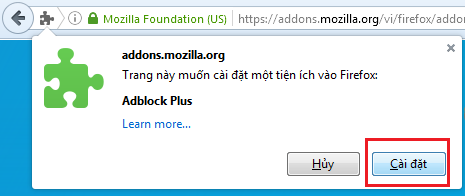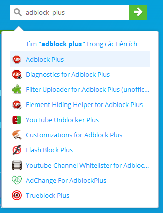 Bước 2: Tại ô tìm kiếm bạn gõ adblock plus, trong danh sách add sổ xuống bạn chọn Adblock Plus