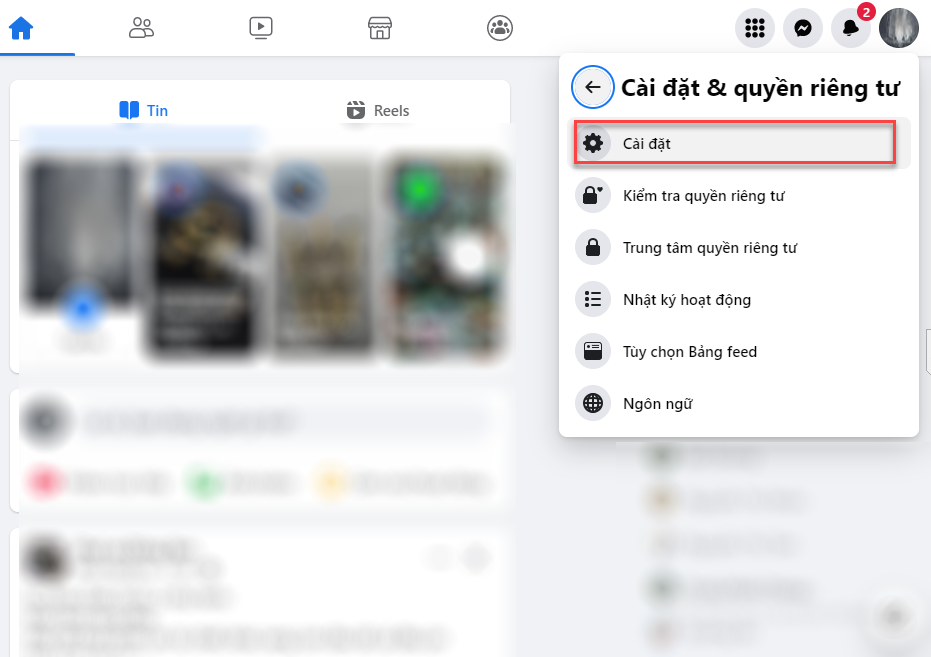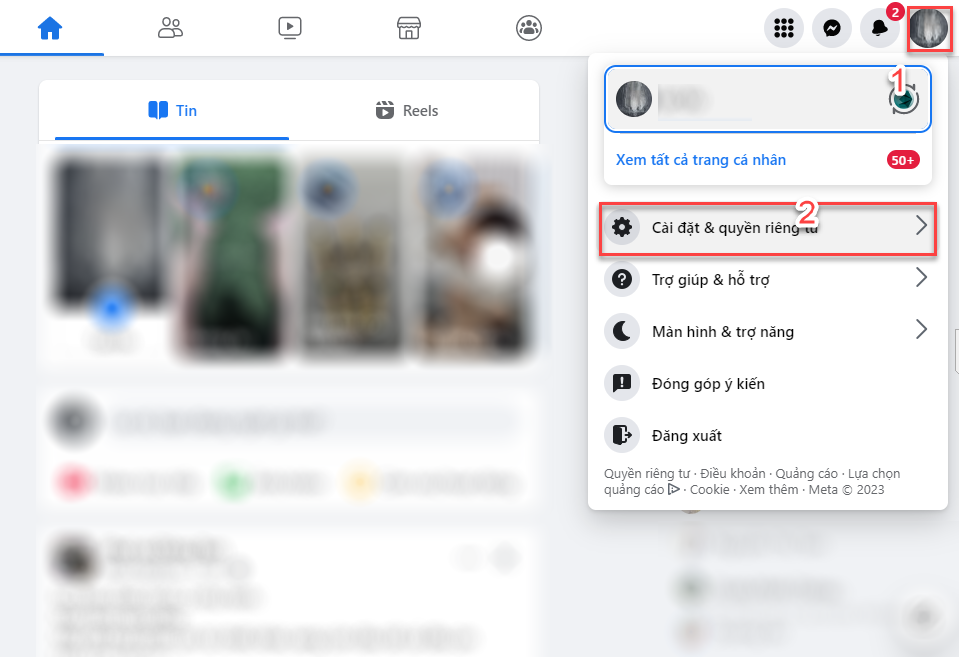 Bước 2: Sau khi đăng nhập, hãy bấm vào biểu tượng cá nhân ở góc phải trên cùng của trang web Facebook và chọn "Cài đặt & quyền riêng tư" từ menu thả xuống. Nếu bạn sử dụng Facebook phiên bản cũ, hãy bấm vào biểu tượng hình bánh răng bên phải trên cùng của trang web, và chọn "Cài đặt".