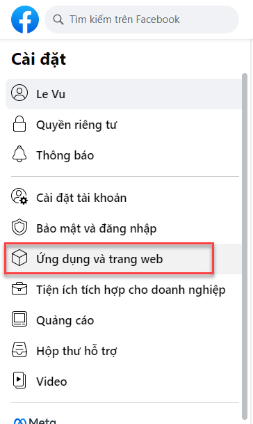 Bước 4: Chọn Ứng dụng và trang web