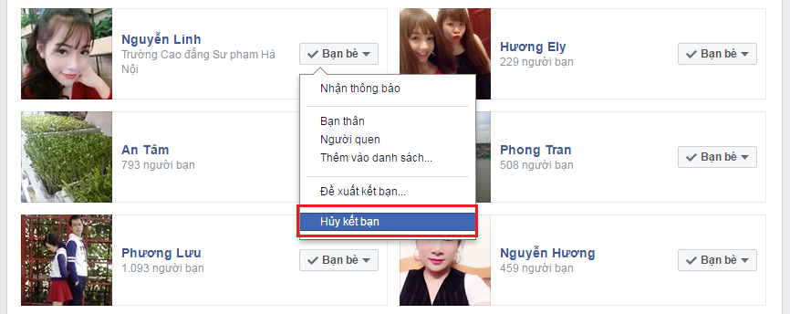 Để hủy kết bạn trên Facebook bạn có 2 cách sau.