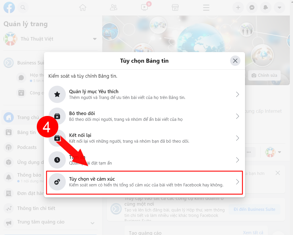 Bước 3: Cửa sổ mới hiện lên bạn chọn Tuỳ chọn về cảm xúc (số 4)