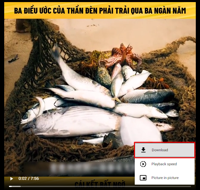 Sau khi click chọn chất lượng video, một cửa sổ mới sẽ mở ra đồng thời video sẽ được bật trên cửa sổ mới đó, bạn click vào dấu ba chấm theo chiều dọc ở góc dưới bên phải video rồi click chọn Download