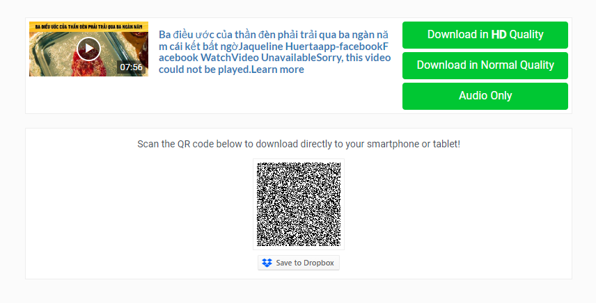Sau khi dán đường dẫn vào trang web tải video Facebook, bạn có thể chọn định dạng và chất lượng video mà bạn muốn tải xuống. Trang web tải video Facebook thường cho phép bạn tải video về dưới dạng MP4 với nhiều chất lượng khác nhau.