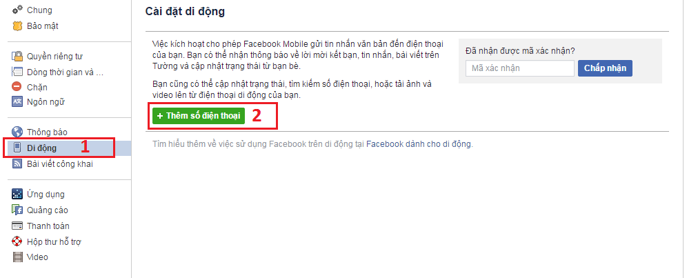 Bước 2: Chọn Di động sau đó click Thêm số điện thoại
