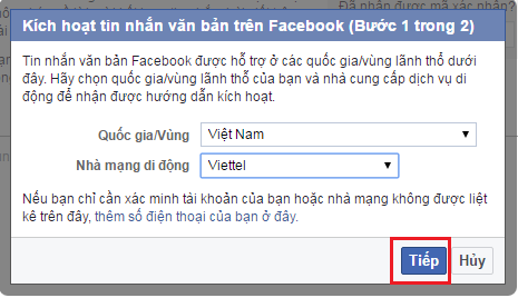 Bước 4: Bạn sử dụng số điện thoại soạn tin nhắn với nội dung F gửi đến 5008, chờ một lúc Facebook sẽ gửi tin nhắn trong đó có chứa mã xác nhận, bạn nhập mã xác nhận vào rồi ấn Tiếp